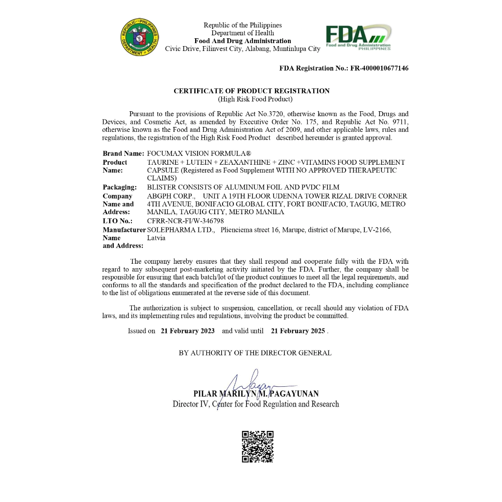 Focumax Vision Formula helps to protect and to maintains healthy cells in the eyes and prevents eye diseases including age-related macular degeneration and cataract, secure eyes from blue light what can cause damage to the retina.